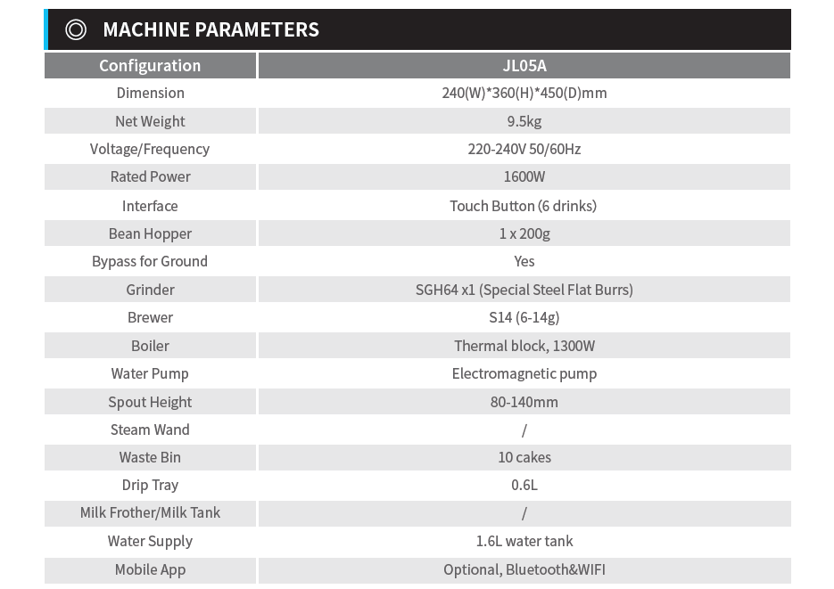 Perfect for elevating your daily coffee ritual, the JL05 brings professional-grade performance straight to your kitchen.